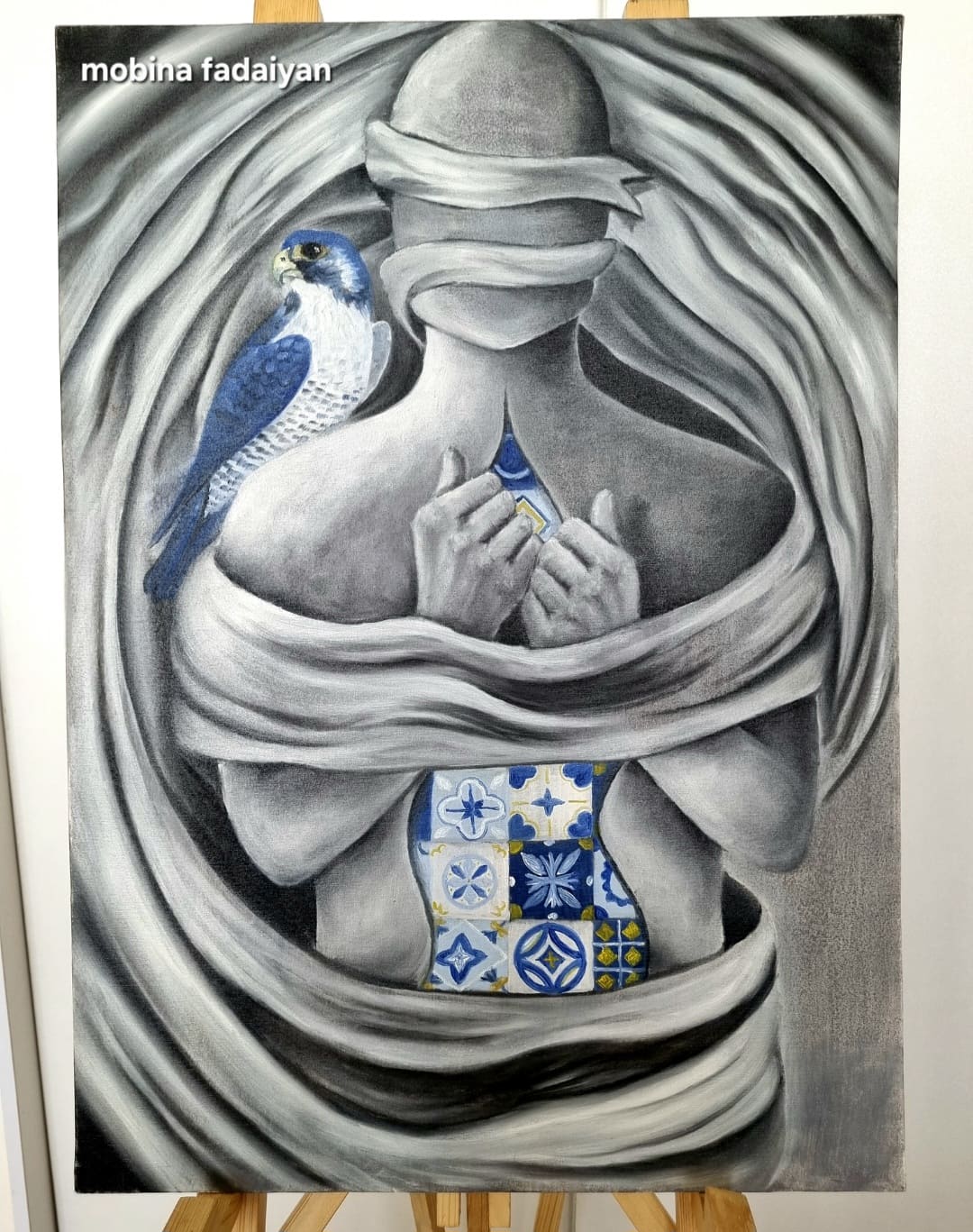 تابلوی محصور سفری ست به درون هنرمدی که در میان تاریکی ها . سکوت و محدودیت های جامعه هنوز رویا میبیند حس میکند و خلق میکند .
